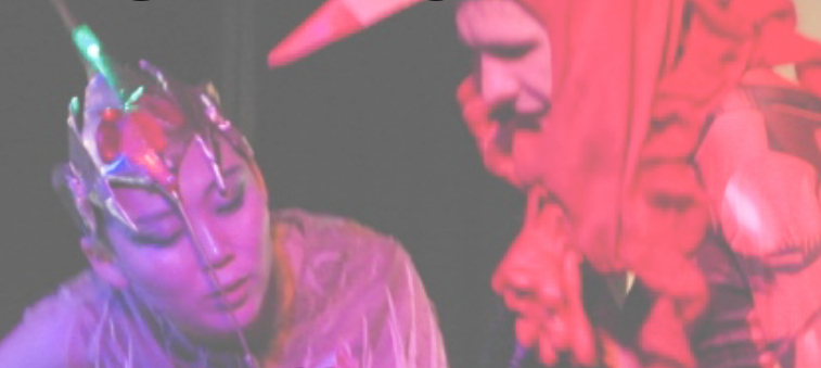 koreanisches Gesang befeuert Freiheit der tanzenden. kimchi hat eukimchi belauscht als er in seinem zimmer eurodance gehört hat, war überrascht und sagte: das gab es bei uns in korea auch. danach entstand eine geteilte leidenschaft für schnelle, koreanische tanzmusik aus den späten 90er jahren, alles u m die 140 bpm, vom sound vielleicht nah an blümchen, vielleicht aber auch nicht. auf jeden fall war und ist uns die musik immer anlass das tanzbein zu schwingen und meist sind wir mit dem impuls nicht allein. dazu kommt die freude, auf der bühne unterschiedlichste formen anzunehmen: ob hammer, vogel, müllbeutel, saure gurke, regenschirm oder vegetarisches würstchen.