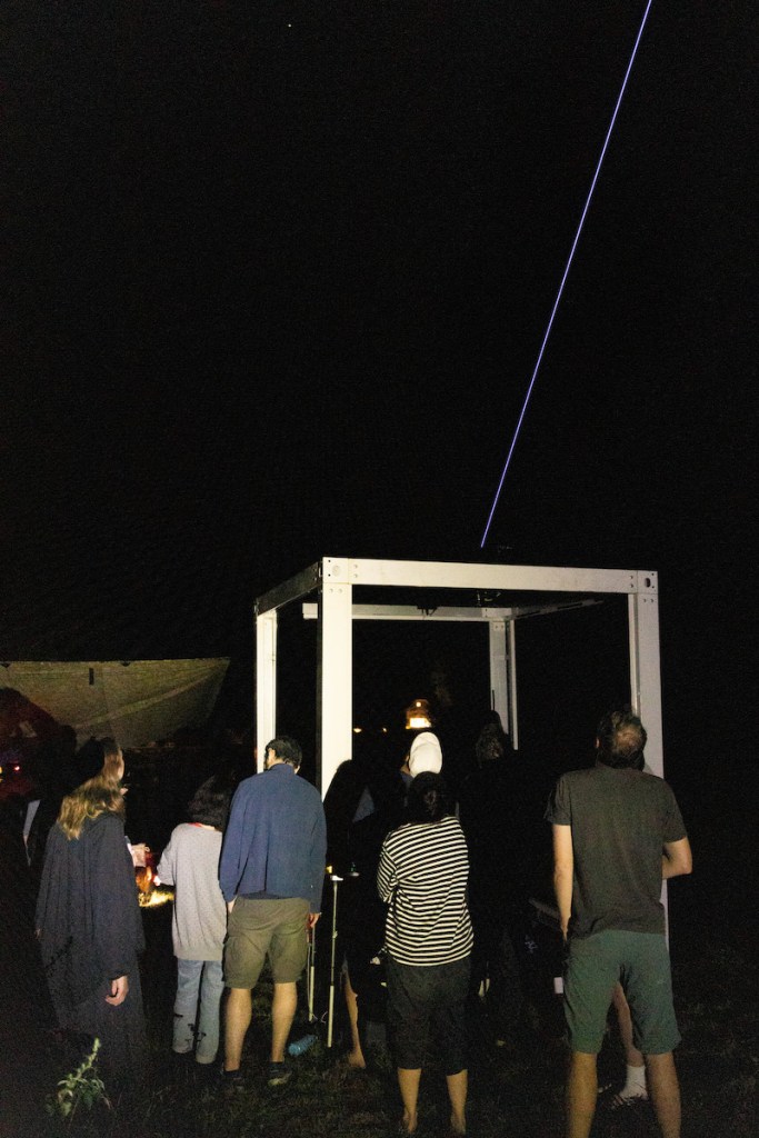 Setzkasten KUBUS is a mobile art space, social sculpture and experimental venue. For the 10th anniversary of our art collective Setzkasten Wien we adopted portable container frames: they serve as an extended space that brings side specific performances, interdisciplinary residencies and discourse from our base in Vienna to various locations worldwide. 2025 we transform the KUBUS into a trans-disciplinary tower. Two 10 feet container frames are stacked on top of each other. On the lower level we present workshops, performances and experimental quadraphonic concerts. On the upper cube mesmerizing 360 laser projections will evolve over time in the course of the festival.
