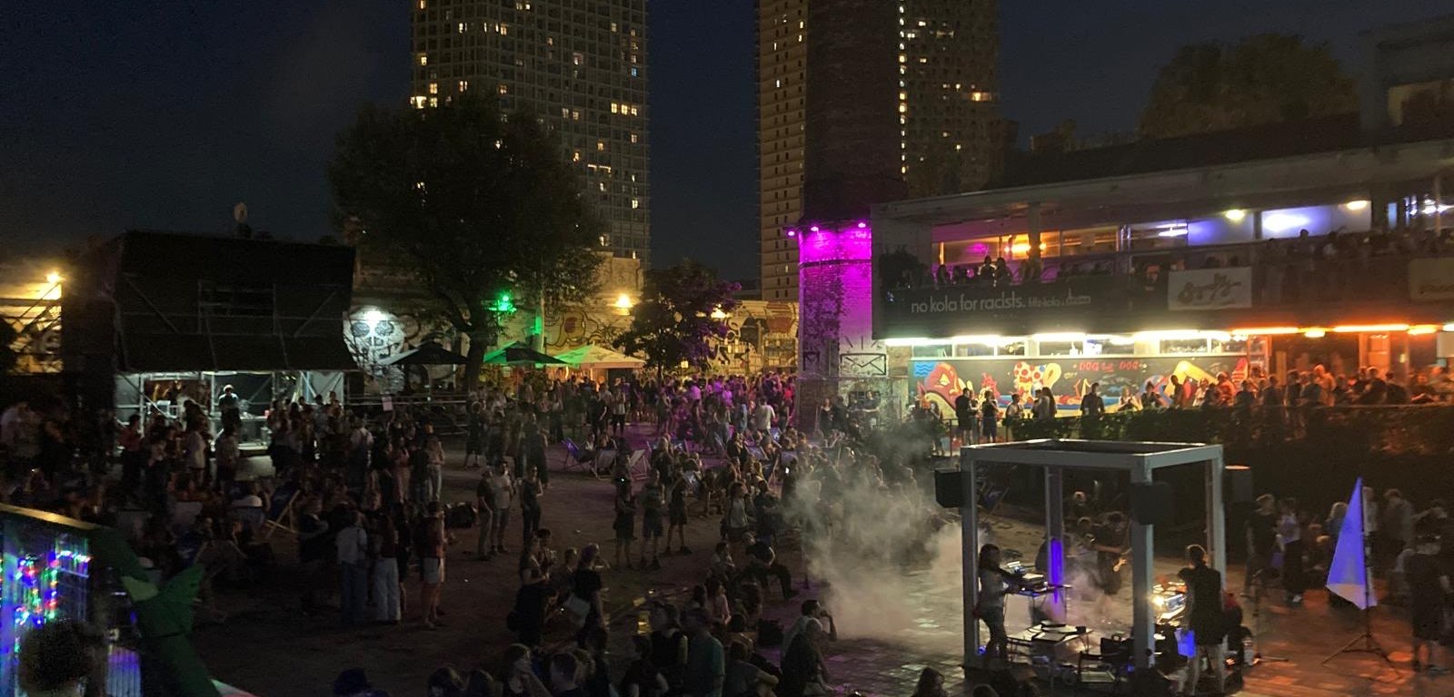 The Tower will be secured with tension belts to each side with ground hooks. 4 Speakers are attached on each Corner of the KUBUS for a quadraphonic sound setup, 2 passive and 1 active Sub Woover + 2x QSC 10.2 active Monitors, Soundcraft UI24 Mixer with Stage Boxes.